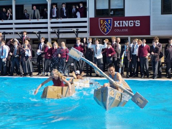The highly anticipated King's College Inter-House STEM Cup 2025 once again delivered some fierce academic and engineering competition across Junior and Senior divisions. This year the events were expertly managed by Shyamal Naran (Year 13, Averill) who worked tirelessly as the chief organizer and question master, with significant support from Ray Shi (Year 13, Peart), Harry Huang (Year 13, Parnell), James Barrington (Year 12, Greenbank) and Hamish Patel-Smith (Year 12, Averill), alongside various other students who contributed to the popular Mathex and Science question pools. The competition featured four main events: a fast-paced Science quiz using student-designed wireless buzzers, a technical Technology round involving Senior robot maze navigation and Junior wireless RC robot racing, a challenging Maths 'mathex' competition, and finally the Engineering Cardboard Boat Race.